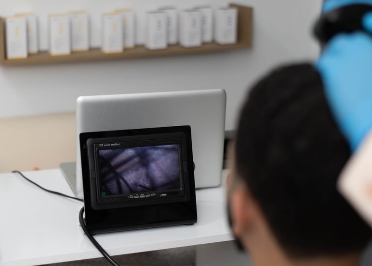 Avaliação tricoscópica, PRP (Terapia Autóloga) , laserterapia, intradermoterapia com fatores de crescimento capilar.